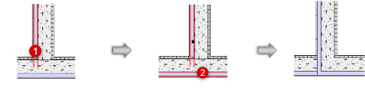 The L Join mode joins the closest ends of two wall components to create a corner. Both component lengths are extended or shortened, as necessary, until they meet cleanly.
