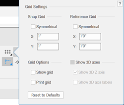 For now, the 3D axes are distracting. Let's hide them. Double-click on Snap to Grid in the Snapping tools area of the View bar. In the Grid Settings popover, deselect Show 3D axes.