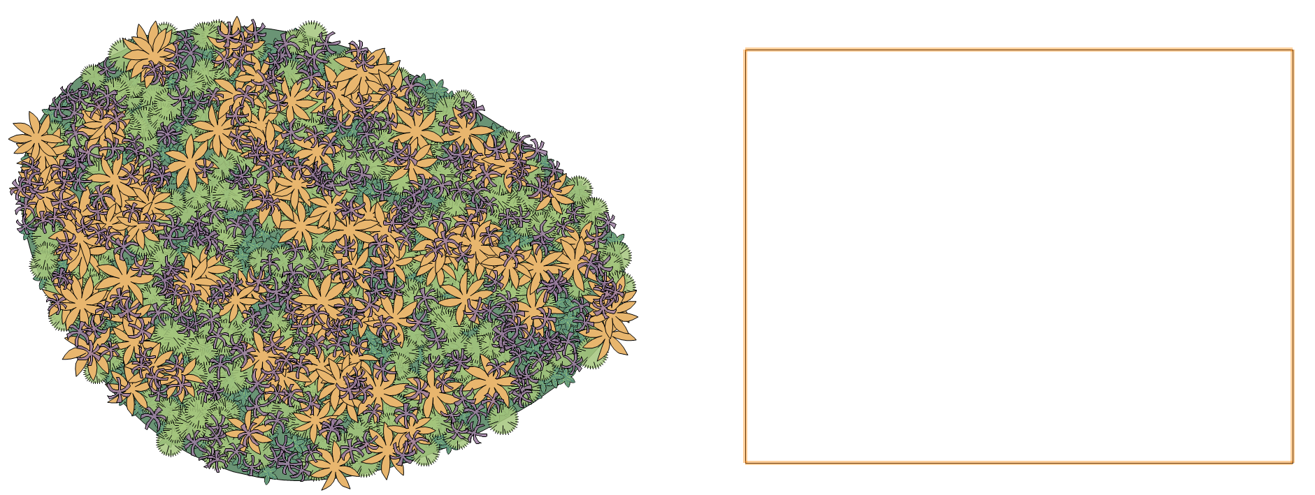 Your client isn't ready to commit to the prairie area, and wants more of a concept design from you. You can easily switch to displaying the landscape area as a plant block instead, while still retaining the plant information for the future. Plant blocks are also useful for understanding the volumes in a concept design, without getting bogged down in the details.