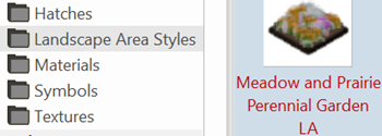 . From the Landscape Area Style Resource Selector on the Tool bar, choose the Meadow and Prairie Perennial Garden LA from the Perennial Gardens folder.