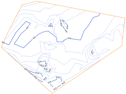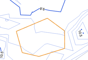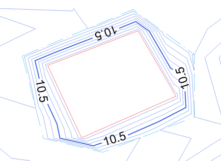 . Draw the grade limit area between the 10.5 m contours.