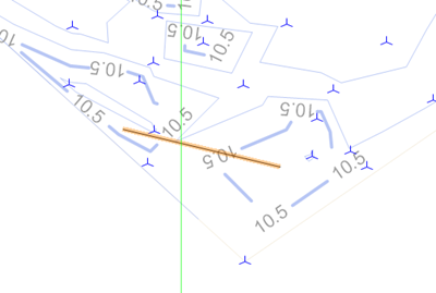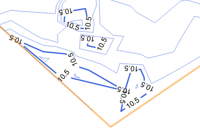 Sometimes, the source data requires adjustment after the site model has been created. If we focus our attention to some of the contours at 10.5 m, we recall from visiting the actual site that the these contours don't perfectly represent the elevations. This can occur when the elevation points from the survey are rather sparse.