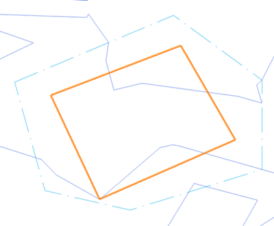 We can still see the Top/Plan view of the site model in the editing mode, which is very helpful. We want to stay in Top/Plan view, so we will stick with a 2D tool to make edits. Click the 2D Polygon tool , click to draw a line connecting two of the 10.5 m areas at the bottom of the window, and double-click to finish.