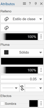 Para controlar los atributos para muchos objetos, o componentes/partes de objeto, al mismo tiempo, atributos pueden ser configurados por configuraciones de clase. Atributos de clase pueden ser asignados a un objeto cuando es creado o después de ser creado. La paleta Atributos presenta una flecha curva para atributos que son configurados por clase.