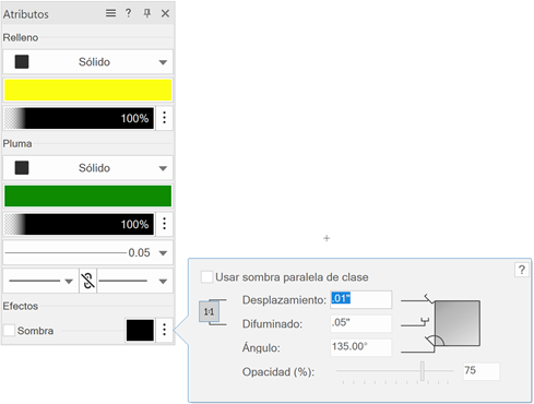 Usa los valores de sombra paralela configurados por la clase del objeto actualmente seleccionado; consulte Configurar atributos de clase |