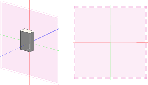 El plano de trabajo aparece con un borde de línea doble si lo ve desde atrás. Si el plano de trabajo está paralelo a la vista de modo que no puede verlo para dibujar en él, el plano de trabajo aparecerá con un borde de línea de puntos.