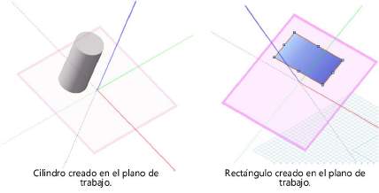 Para rápidamente colocar objetos en superficies planas existente sin crear un plano de trabajo, active el modo Plano automático desde la barra de herramientas; consulte Modos del plano de trabajo.