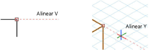 Muestra una línea de extensión cuando el cursor se alinea horizontalmente, verticalmente o en la dirección X, Y, o Z con un punto inteligente o dátum