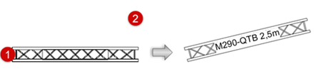 Cuando agrega un truss a otro truss o una línea de trusses, es automáticamente insertado en el mismo ángulo de suspensión que el sistema existente, incluso si un diferente modo de colocación o ángulo de suspensión es especificado. Dependiendo del recurso seleccionado, el truss agregado puede ser un elemento recto, curvo (o circular), de bisagra o de esquina.