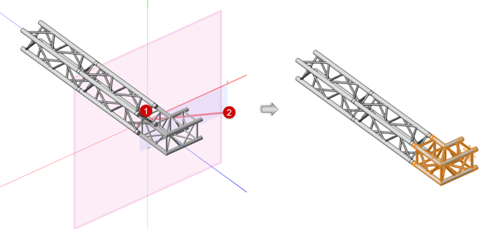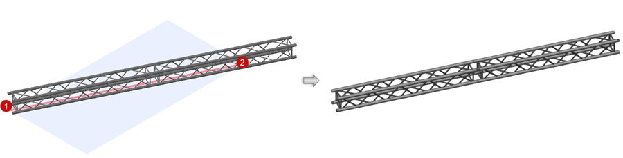 Conectar trusses en un ángulo de suspensión personalizado también depende de la vista actual. Para mejores resultados, configure una vista que es perpendicular a la dirección del truss y use proyección ortogonal.