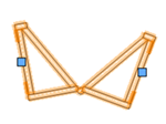 Truss de bisagra son colocados de manera similar y sólo pueden ser colocados en modo Inserción única. Después de la colocación, seleccione la bisagra y ajuste el ángulo de bisagra con los controladores (o edite el Ángulo de bisagra en la paleta Información del objeto). El ángulo de bisagra debe estar entre el Ángulo mínimo y Máximo especificado en el cuadro de diálogo Propiedades de truss; si no es así, el ángulo válido más cercano será usado.