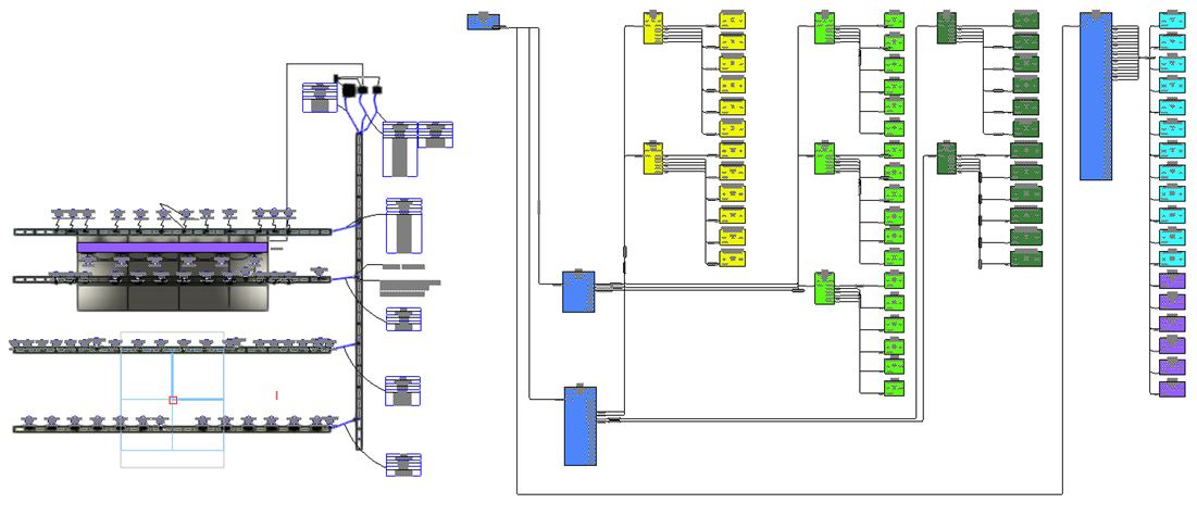 Plano de luces (izquierda) y diagrama esquemático de energía (derecha)