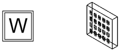 Vistas 2D y 3D de un punto de terminación en caja de pared