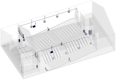 El conjunto de herramientas Diseño de eventos disponible en ConnectCAD incluye objetos tales como cámaras, luminarias y altavoces, que pueden ser colocados en un modelo de ConnectCAD y etiquetados como elementos de equipos.