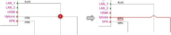 Donde dos circuitos intersecan, prioridades de enrutamiento pueden ser indicadas con un cruce sin conexión.