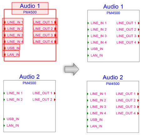 Use la herramienta Selección en modo Bumerán para seleccionar un conjunto de dispositivos al mismo tiempo.