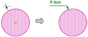 El modo Radial externo mide y acota el radio de un círculo o arco, y coloca la cota fuera del objeto.