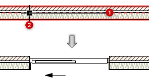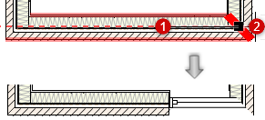 Una puerta/ventana/ensamblaje sólo puede colocado en un único objeto de pared, por lo que si un objeto cruza dos paredes deberá dibujar una apertura de objeto vacía en la segunda pared y acoplarla a las cotas del objeto original para crear el orificio en la segunda pared.