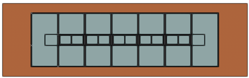 Modo Dividir mainel: Posicione el curso con la línea larga paralela al mainel a dividir, y luego haga clic para dividirlo donde interseca con otro marco o mainel.