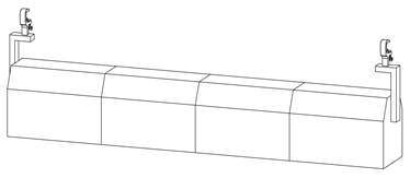 Una definición de símbolo de multicelda combina símbolos de celda individuales para formar un símbolo contenedor. Por ejemplo, esta franja de luz de cuatro celdas consiste en cuatro símbolos de celda anidados: uno a la izquierda, dos en el centro, y uno a la derecha. Dependiendo del dispositivo, algunos símbolos de celda pueden ser duplicados. En esta franja de luz, los dos símbolos de celda de centro son idénticos.