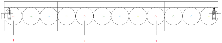 El orden que los símbolos de celda son colocados determina sus números de índice. Esto es importante para seleccionar y editar las celdas en el dibujo. El primer símbolo colocado es la celda #1, el segundo es la celda #2, etc. Consulte Concepto: Luminarias multicelda para más información sobre números índice.