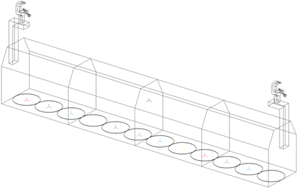 El siguiente flujo de trabajo describe como crear las definiciones de símbolo de celda anidados y combinarlos para formar la definición del símbolo contenedor de multicelda. El proceso para crear cada símbolo de celda es similar a la creación de símbolos de luminaria individuales (consulte Flujo de trabajo: Crear definiciones de símbolo de luminaria), pero existen algunas importantes distinciones.