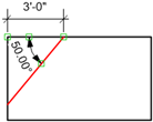 La herramienta Vértices achaflanados permite colocar un vértice achaflanado o una línea entre dos objetos o lados adyacentes de un objeto, incluidos rectángulos, curvas NURBS, polígonos, polígonos tridimensionales, polilíneas o segmentos lineales. No es posible poner un vértice achaflanado entre dos líneas paralelas ni entre curvas NURBS.