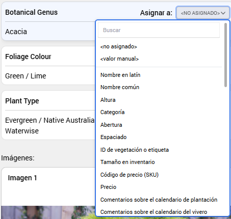 Si el sitio web tiene imágenes de la planta, estas también pueden ser asignadas.