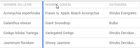 Enumera todo estilo de planta en el archivo, o si filtros de columna están siendo usados, todo estilo de planta que cumple con los criterios de filtro. La lista ofrece una variedad de controles para ordenar y filtrar la lista, y para editar y usar los estilos de planta. Un estilo de planta único puede ser editado sin seleccionarlo primero; haga clic en un parámetro en una de las columnas para editarlo. Para editar las columnas de una selección de estilos, haga clic en cada fila o presione Mayús antes de hacer clic en una segunda fila para seleccionar todos los estilos en el rango. Haga clic en una fila por segunda vez para anular su selección. Haga clic en el icono — en la esquina superior izquierda del Administrador de estilo de planta para seleccionar o anular la selección de todo estilo de planta en la lista. Estilos seleccionados son resaltados. |