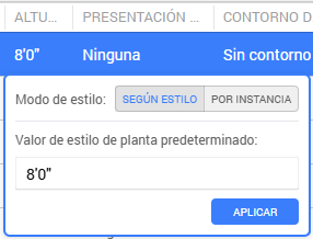 A medida que el mouse es movido sobre los parámetros y etiquetas de un estilo de planta, se presenta un icono de lápiz Seleccione si aplicar el valore predeterminado nuevo al estilo de planta actual solamente, a todo estilo de planta seleccionado, o a todo estilo de planta en el archivo, y haga clic en Aplicar.