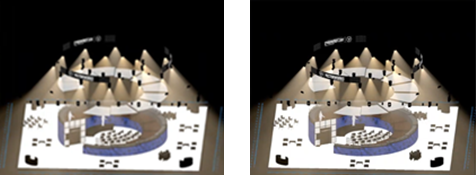 Ya que previsualización normalmente ocurre en un ambiente interior oscuro, presentar la geometría de cada luminaria móvil no es típicamente necesario. Se recomienda ocultar la geometría de luminarias móviles para renderizado más rápido. |