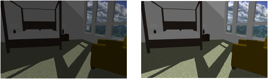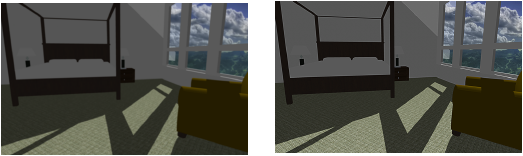 Al modificar propiedades de viewport o un estilo de viewport (consulte Propiedades de viewport o Creación y edición de estilos de encuadre), seleccione Aplicar efectos de imagen y luego haga clic en Efectos de imagen desde la paleta Información del objeto o el cuadro de diálogo Editar estilo de viewport, o seleccione Editar efectos de imagen desde el menú de contexto. Debe renderizar el encuadre con el modo Matizado o con un modo de Renderworks.