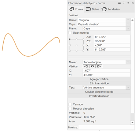 Al ser creados, objetos de polígono y polilínea 2D y 3D pueden estar abiertos o cerrados. Para polilíneas, también puede usar el botón Ocultar siguiente borde desde la paleta Información del objeto, o usar el modo Ocultar o mostrar bordes de la herramienta Remodelar para ocultar bordes específicos del objeto después de la creación, lo cual abre un objeto cerrado.