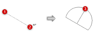 Mover el mouse para dibujar el arco o usar la barra para ingresar un ángulo. Grados comienzan en el eje X positivo (la dirección "Este") y aumentan contra el sentido de las manecillas del reloj. ("Este" es 0 grados; "Norte" es 90 grados; y "Oeste" es 180 grados.) Para dibujar un arco de un cuarto de círculo que comienza en 0 grados y termina en la posición de las 6 en punto, ingrese -90 (menos 90) grados. Ingrese 270 para dibujar un arco de tres cuartos de un círculo alrededor.