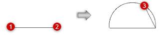 Sin la tecla Shift, el ángulo de la línea entre los puntos de fin del arco (clic 1 y 2) es libre, y la cuerda que define la altura del arco es una línea libre dibujada desde el segundo punto de fin