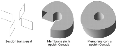Crea una membrana que se cierra en sí misma. Ya que el punto de inicio no puede ser seleccionado como el punto de fin de una membrana, la opción Cerrada completa la conexión automáticamente.