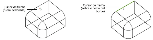 El cursor cambia a una cabeza de flecha cuando está sobre o cerca de un borde, y el borde es resaltado para su selección. Si más de un borde está cerca del cursor, el borde más cercano es resaltado. Haga clic en el borde para seleccionarlo.