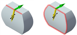 Haga clic en el borde a desplazar; un control deslizante 3D con una flecha de dos puntas es colocado en el borde seleccionado. Para modo Bucle de borde, el bucle completo es resaltado al mover el cursor en el sentido de cada flecha.