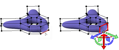 Al mover el cursor sobre la malla jaula sus bordes, facetas y vértices son resaltados para indicar que pueden ser modificados.