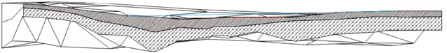 El grosor total de un modelado de terreno es igual a la suma de sus componentes. Relleno de componente y estilo de pluma sólo son presentados en viewports de sección.