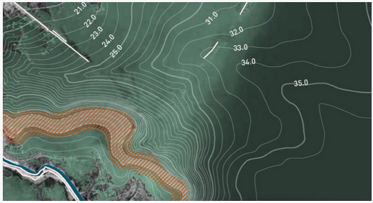 El modelo de sitio existente proporciona la línea de base para todo cálculo de corte y relleno.