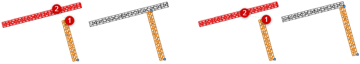 Para una unión en L, haga clic en el controlador azul del bordillo a unir más cercano al bordillo a unir. Mueva el cursor al bordillo de unión, el cual se resalta para mostrar que es elegible para unir. Haga clic en una parte del segundo bordillo a conservar en la opción unir escotar. El primero bordillo se extiende al punto de intersección con el segundo bordillo y el segundo bordillo es escotado para formar la L. Si los dos bordillos no están alineados para que sólo intersequen cuando el primero bordillo es extendido, el segundo bordillo también es extendido para que converjan.