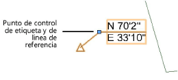 Si está usando la etiqueta de datos, la configuración de la etiqueta de datos determinará la posición de rótulo y configuración de segmento portarrótulos. Si está usando la etiqueta integrada, mueva el punto de control para ajustar la posición de rótulo y línea de referencia. Si hay varios objetos de estaca use el comando Alinear/Distribuir líneas de referencia para mejorar la legibilidad (consulte Alinear y distribuir líneas de referencia).