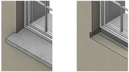 Agregue un objeto 3D al componente de orificio de la misma forma que el alféizar y seleccione Ignorar cierre para eliminar esa geometría desde la pared después de que el cierre de pared es aplicado (objeto de alféizar oculto para mostrar el efecto en la pared)