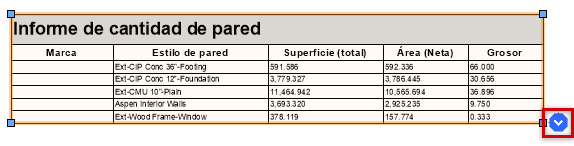Seleccione la imagen de hoja de cálculo y mueva el cursor sobre el borde inferior del objeto para resaltarlo. Haga clic y arrastre para ver una vista previa del recorte, y luego haga clic nuevamente para aplicar el recorte. El botón de menú de la imagen cambia de azul a rojo para indicar que la hoja de cálculo tiene filas de rebalse que no están en el dibujo.
