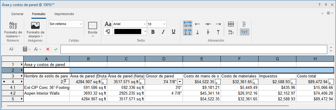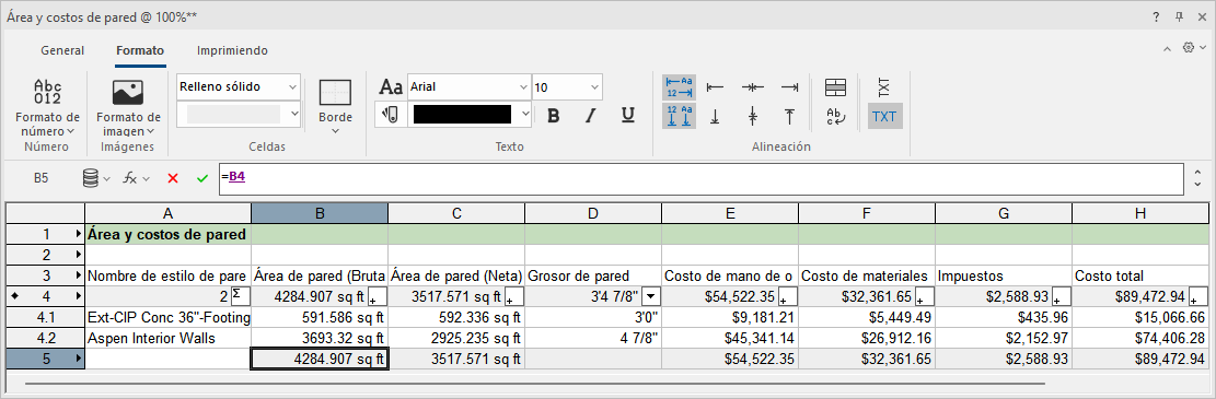 Este simple tutorial de hoja de cálculo explica cómo crear un inventario personalizado que vincula objetos de pared en un dibujo a una hoja de cálculo de base de datos. El inventario presentará datos para áreas de pared, grosores de pared, costo de mano de obra, costos de suministros/materiales, impuestos y costo total por estilo de pared.