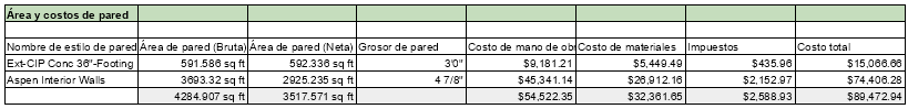 En lugar de enumerar cada pared individualmente en la base de datos, puede resumir todas las paredes con el mismo estilo de pared, calculando las cantidades totales para cada una automáticamente y acortando la lista.